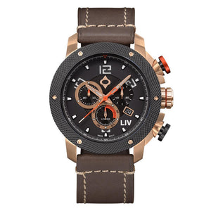 Meet the watch design that started it all, the GX1 Classic Chronograph. Everything about this timepiece defies the rules and stodgy ways of the traditional watch world. The design was crowdsourced. The watch was crowdfunded. The result is a classic, yet unique watch carefully crafted to meet Swiss craft, quality, and precision standards at a price that makes the big brands shake. Just the way LIV intended.
